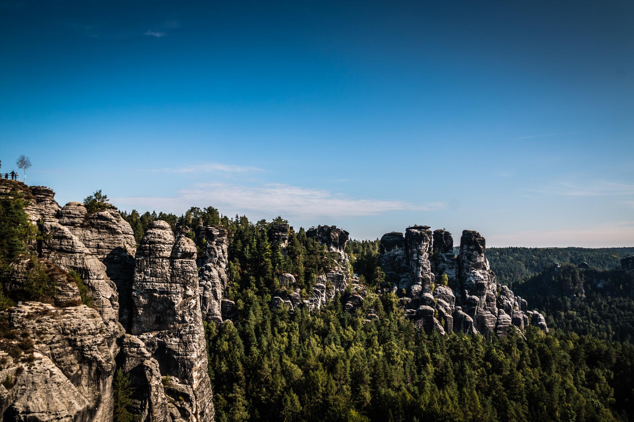 Das Elbsandsteingebirge an der sächsischen Grenze zu Tschechien erstreckt sich auf beiden Seiten der Elbe über etwa 700km². Während der deutsche Teil des Mittelgebirges auch unter dem Namen Sächsische Schweiz wohlbekannt ist, kennen nur wenige auch den tschechischen Teil, die Böhmische Schweiz. Beim Wandern im Elbsandsteingebirge triffst Du fast überall auf eine stark zerklüftete Felslandschaft mit den für diese Region typischen Tafelbergen und Schluchten, die sich mit ausgedehnten Wäldern und Ebenen abwechseln. Etwa 1.200km oft grenzüberschreitender Wanderwege führen durch die grandiose Felslandschaft: Beim Überqueren der Grenze solltest Du unbedingt daran denken, Personalausweis oder Reisepass und einige tschechische Kronen dabeizuhaben.